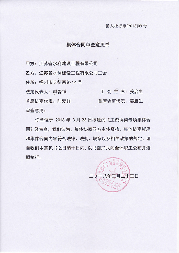 工資協(xié)商專項集體合同審查意見書