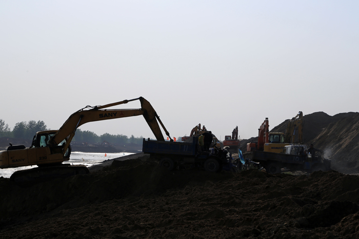 145萬(wàn)方土,在過(guò)去肩挑手扛的年代,需要一年時(shí)間;在現(xiàn)在的機(jī)械化作業(yè)情況下,至少需要100天。而業(yè)主給項(xiàng)目部的時(shí)間僅為60天,幾乎是不可能完成的任務(wù)。公司的鐵軍精神再次被發(fā)揮到極致。項(xiàng)目部將工程分為5個(gè)施工區(qū),組織了60臺(tái)挖掘機(jī)、15臺(tái)推土機(jī)、11臺(tái)裝載機(jī)、140臺(tái)運(yùn)輸車(chē)晝夜不停地展開(kāi)施工。項(xiàng)目部采取加班加點(diǎn)、班組競(jìng)賽、獎(jiǎng)快罰慢、快者多干等激勵(lì)手段,加快工程進(jìn)展。工程高峰期日開(kāi)挖土方達(dá)6萬(wàn)方,創(chuàng)下了我公司土方施工的新紀(jì)錄。