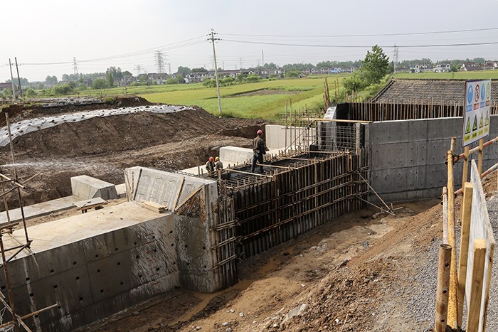 本工程是2017年長江堤防防洪能力提升工程的重要組成部分,包括拆建長江主江堤長溝涵、雙涵、馬橋涵、馬橋泵站出水涵等施工內(nèi)容。工程于2017年3月6日開工建設(shè),計劃5月底完工并具備擋洪條件。施工過程中,水利部、省、市防汛指揮機構(gòu)高度重視該工程建設(shè),多次到現(xiàn)場督查指導(dǎo)。我公司項目部員工克服工期緊、戰(zhàn)線長、施工點面多等困難,精心組織,日夜奮戰(zhàn),目前已完成了主體工程施工。下一步將做好回填、護坡、護底等掃尾工作,確保按期優(yōu)質(zhì)地完成施工任務(wù),確保工程如期發(fā)揮防洪功能。