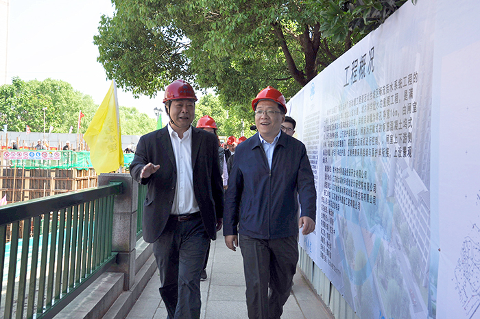 5月3日,常州市市委副書記、市長丁純到我公司承建的常州市暢流活水洋橋活動堰工程檢查指導(dǎo)工作,副市長許崢、市水利局局長秦文秋、市交通產(chǎn)業(yè)集團(tuán)董事長葉軍、總經(jīng)理周偉和我公司黨委書記、董事長時(shí)愛祥參加活動。