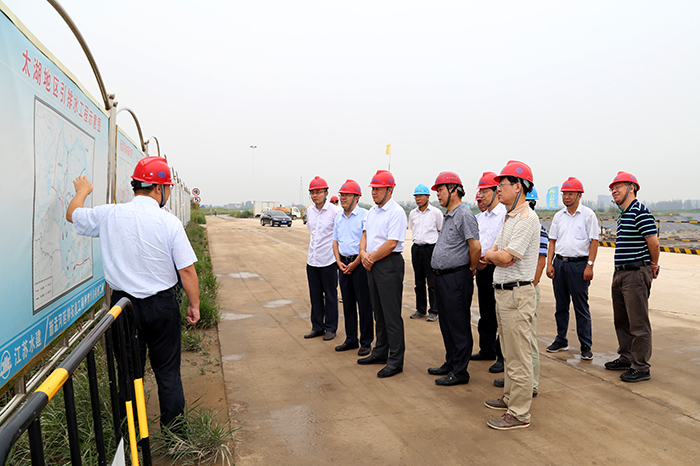 97日上午,水利部水利工程建設(shè)司副司長袁文傳帶隊赴我公司界牌樞紐工地調(diào)研工程建設(shè)情況。太湖流域管理局副局長黃衛(wèi)良、省水利廳副廳長朱海生等陪同調(diào)研。我公司黨委書記、董事長時愛祥、副總經(jīng)理顧永明、總經(jīng)理助理、界牌樞紐項目經(jīng)理湯應(yīng)來參加活動。
