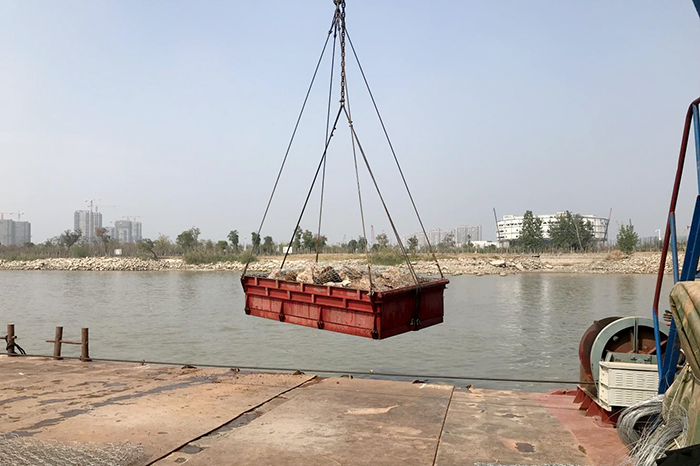 該工程位于南京市浦口區(qū)長(zhǎng)江左岸七里河下游1km至南京港三十四號(hào)碼頭,護(hù)岸工程長(zhǎng)度2090m。項(xiàng)目部于3月份進(jìn)場(chǎng)籌備,汛期前完成了水下賽克格賓拋石118703.5m³。施工過(guò)程中,項(xiàng)目部克服了施工區(qū)域碼頭多,運(yùn)輸船舶往來(lái)頻繁,安全管理任務(wù)重等困難,做到每條作業(yè)船配備一名專職安全員,每條施工船安全網(wǎng)全覆蓋,項(xiàng)目負(fù)責(zé)人與計(jì)量監(jiān)理、安全員同步工作;并嚴(yán)查安全隱患因素,每日一報(bào)安全隱患及整改落實(shí)情況;科學(xué)有序地組織施工作業(yè),確保序時(shí)進(jìn)度和工程質(zhì)量,圓滿完成了各項(xiàng)施工任務(wù)。