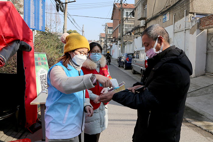 簽約儀式結束后,來自各分(子)公司、各部門的近30名巾幗志愿者、青年志愿者戴起了紅袖章,穿上了紅馬甲,立刻投入到社區(qū)防控卡口的值守工作中。春寒料峭,一天的值守工作雖不難卻也不易。在社區(qū)工作人員的幫助和指導下,志愿者們?yōu)樾^(qū)出入居民測量體溫,引導其用微信掃描出行碼、填寫健康動態(tài)二維碼、登記外來人員信息,用實際行動投入到抗疫一線。
