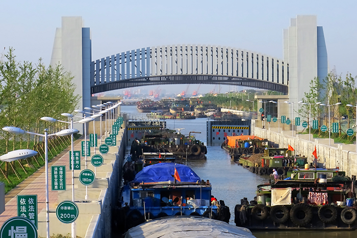 ——河道工程在一期工程基礎(chǔ)上擴(kuò)建,全線(xiàn)24公里河道向下浚深3米,自流引江規(guī)模從300立方米每秒擴(kuò)大到600立方米每秒。河道工程項(xiàng)目部制定了高標(biāo)準(zhǔn)的質(zhì)量目標(biāo)和創(chuàng)優(yōu)計(jì)劃,河道浚深重點(diǎn)解決不斷航施工的矛盾,采用的軟體沉排護(hù)岸施工工藝,為江蘇省內(nèi)河防護(hù)項(xiàng)目首次應(yīng)用;船舶臨時(shí)??奎c(diǎn)采用滑模技術(shù),疏浚排泥場(chǎng)應(yīng)用泥水快速分離試驗(yàn)成果,實(shí)現(xiàn)了安全、高效、環(huán)保施工。